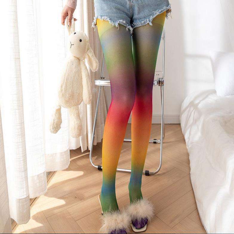 Explosive Party Pantyhose Day Pantyhose Personality Rainbow Socks Thin Women's Gradient Striped Spring and Autumn Color Tights