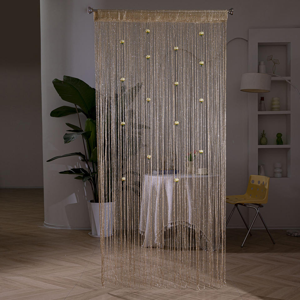 Tende in Tessuto Argentato con Motivo a Rose Esplosive e Nappe, Stampa Floreale per Divisori e Tende Rinforzate