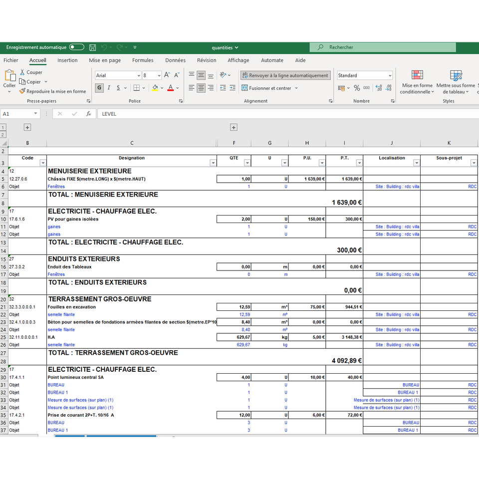 Esportare quantità e documenti in Excel - BTP