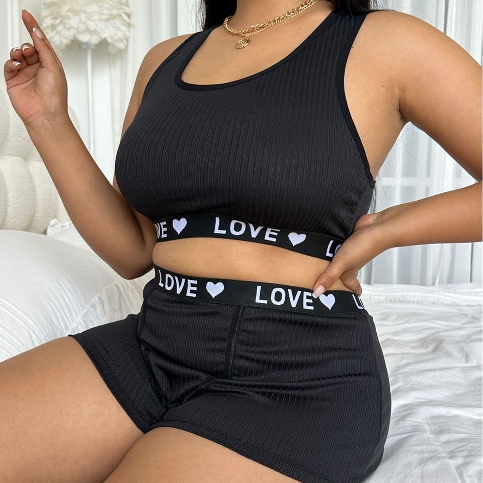 Set di Lingerie donna Plus-size da donna, reggiseno con stampa lettere e pantaloncini da due pezzi