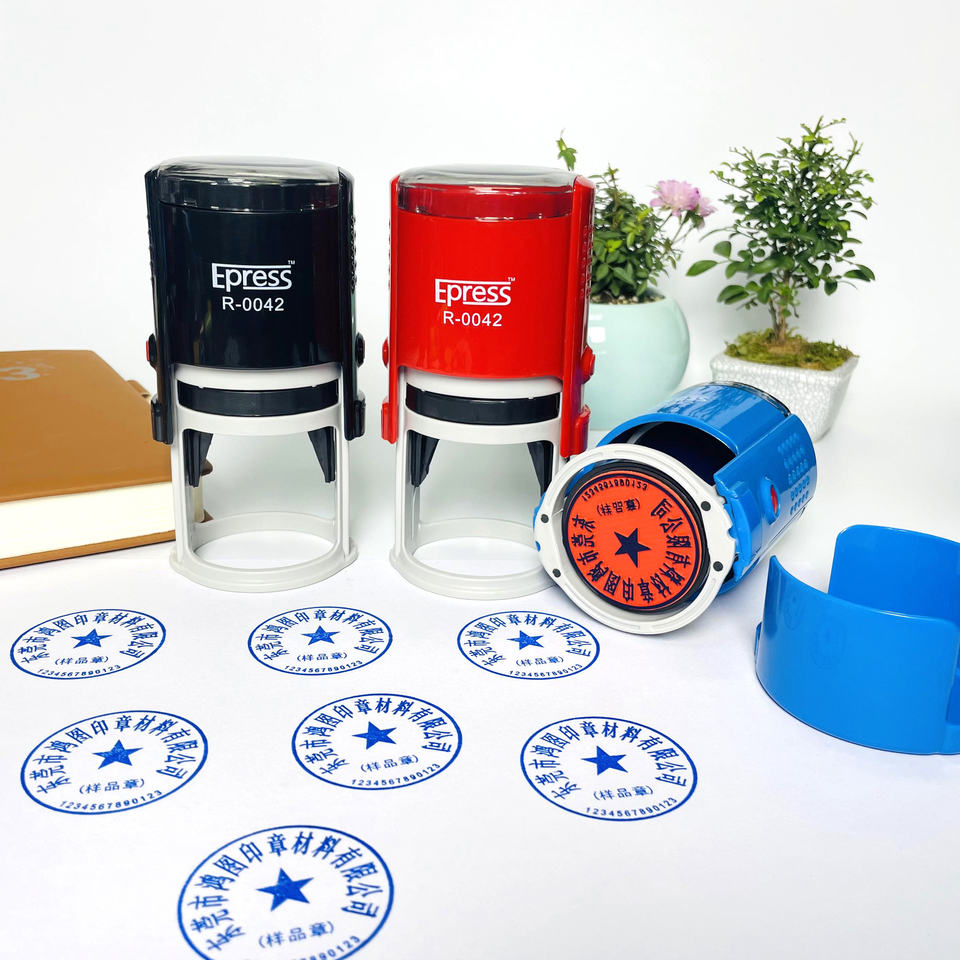 Express R-0042 42mm Round Custom Logo Self-Inking Stamp with Ink Pad for Office Use