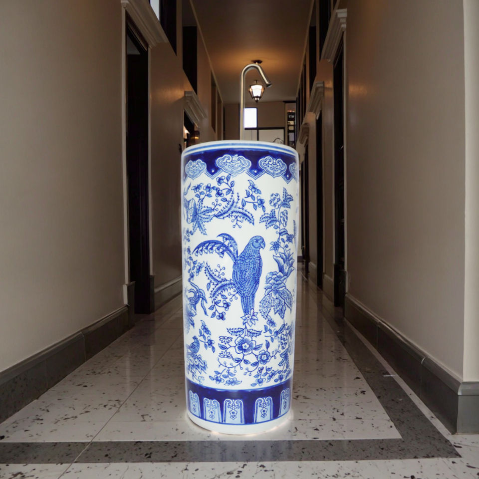 Elegante Portaombrelli in Porcellana Blu e Bianca dell'Artigianato del Guangdong, Contenitore Decorativo per Interni e Ingressi