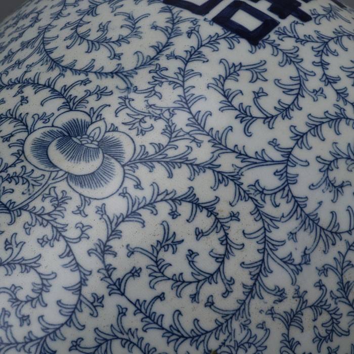 Squisito Vaso in Ceramica Blu e Bianca Dipinto a Mano con Motivo 'Felicità' della Dinastia Qing Cinese