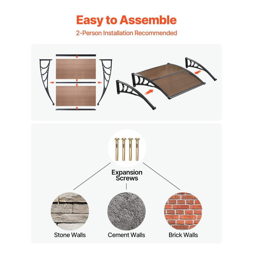 Tende da Sole per Porte Esterne 38 x 40 Pollici con Staffa di Drenaggio in ABS per Protezione da Pioggia, Neve e Sole - Tende da Sole per Ingressi