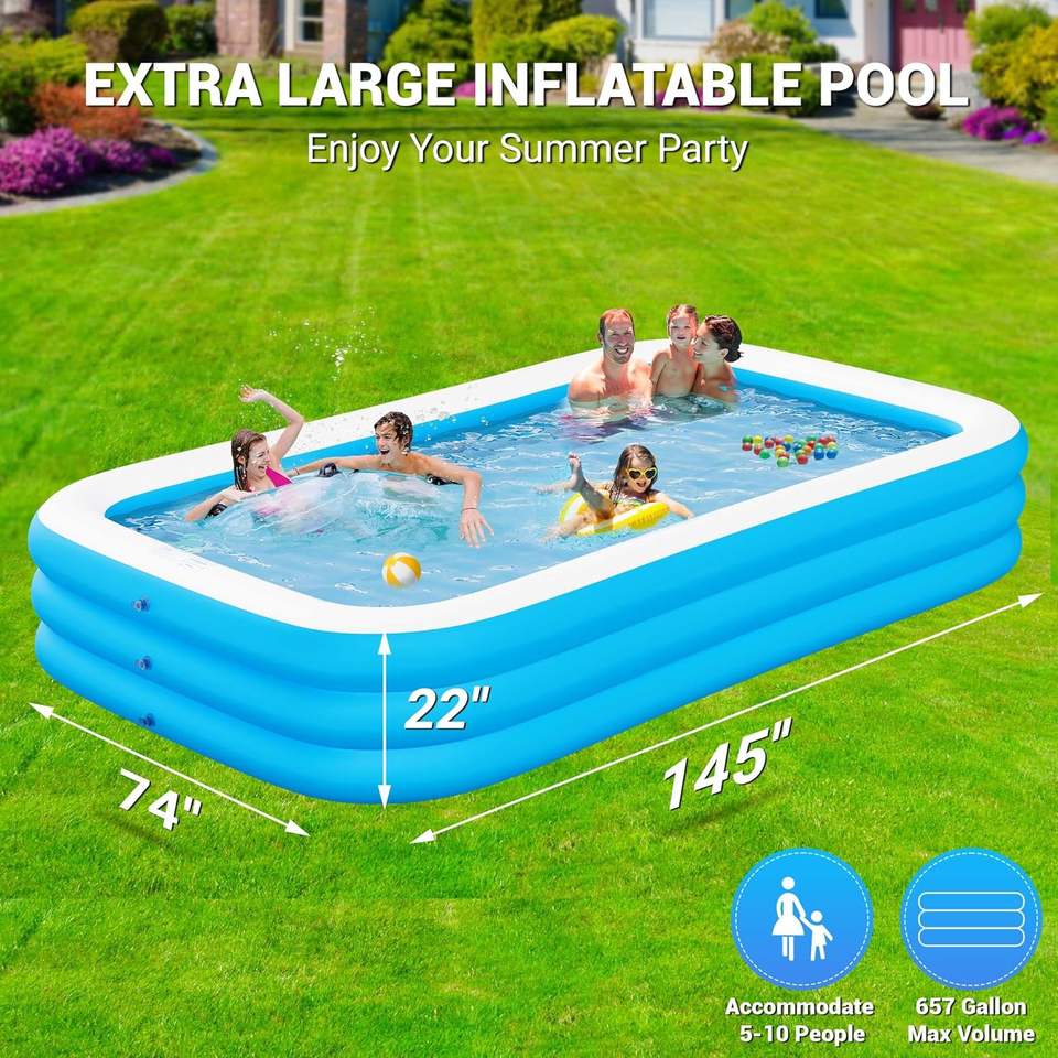 Extra Large 145\"x74\"x22\" Thickened PVC Inflatable Pool for Adults Logo Oversized Blow-Up Sea Swimming Pool Repair Patch