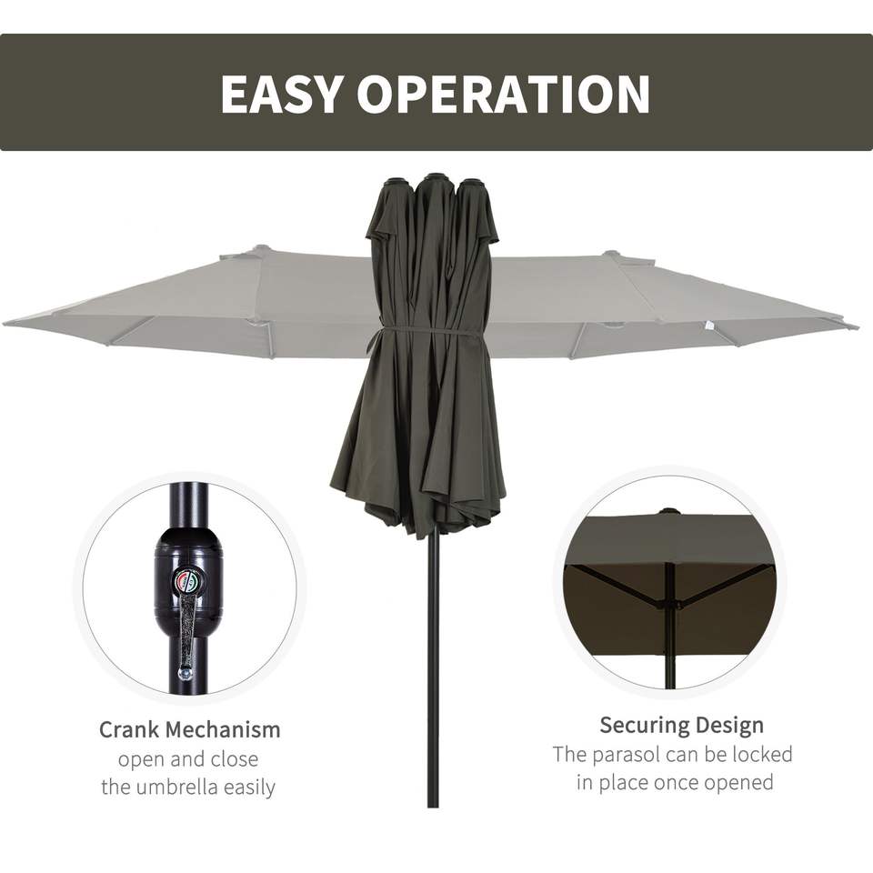 Ombrellone da Giardino Extra Large 15ft a Doppia Faccia Grigio con Manovella per Terrazza, Prato, Cortile, Piscina e Spiaggia