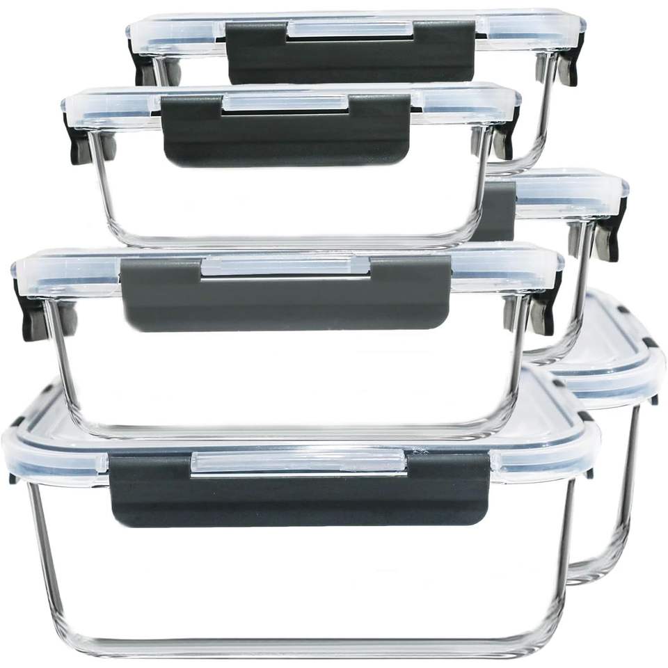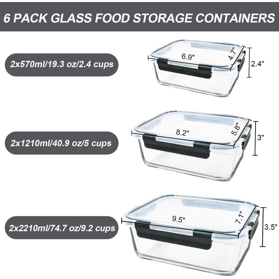 Set di Contenitori in Vetro per Alimenti Extra Large da 74.7oz (9.2 Tazze), 40.9oz (5 Tazze), 19.3oz (2.4 Tazze), Confezione da 6 con Coperchi Ermetici per Conservazione