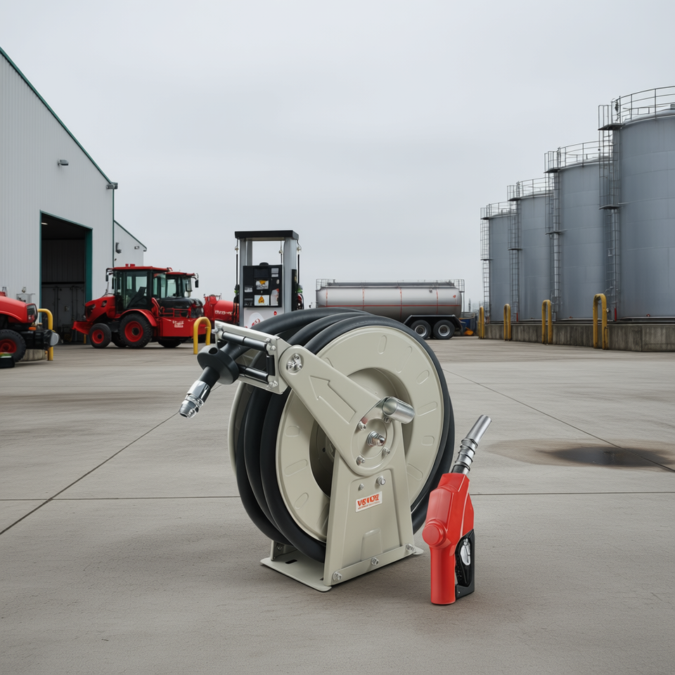 Avvolgitubo Carburante Diesel 1 Pollice x 33 Piedi, Acciaio al Carbonio Resistente, Ugello Automatico, Gomma NBR, Uso Industriale