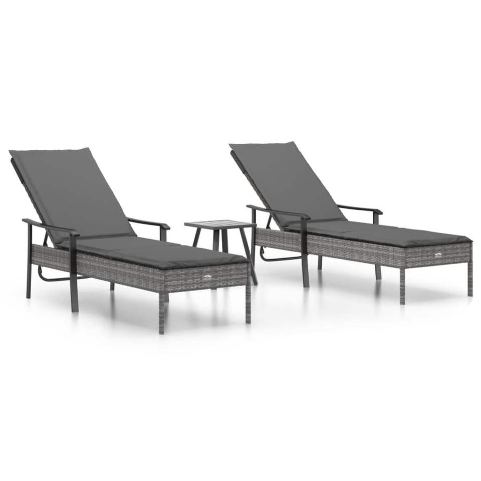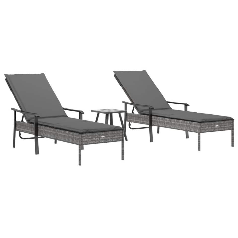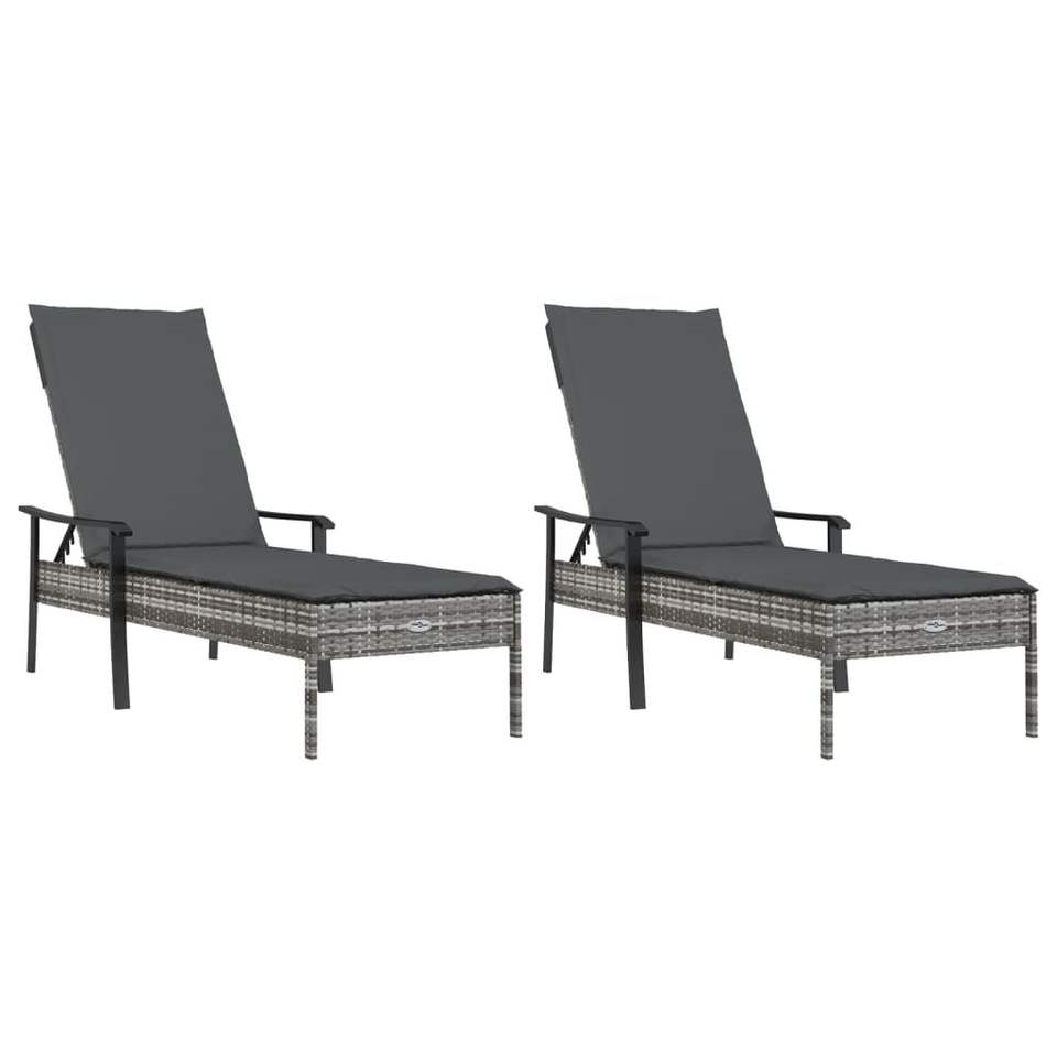 Extra Long Sun Lounger In Grey Pe Rattan With Powder Coated Steel Frame For Patio Outdoor Use