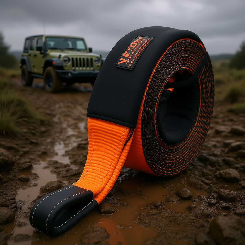 Cinghia di Recupero 4 Pollici x 30 Piedi, Resistenza alla Rottura 46500 Libbre, Tripla Rinforzatura, Protezione Alberi, per Rimorchio Stradale