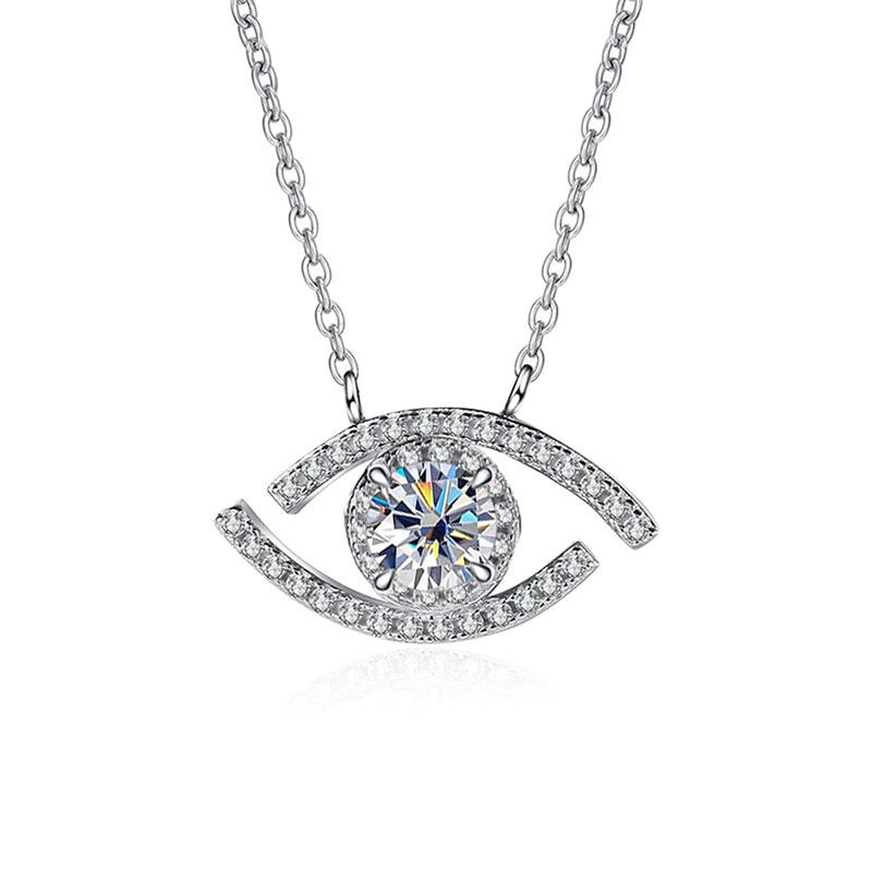 Collana con Ciondolo a Forma di Occhio in Argento 925 Placcato Rodio, Cristallo Strass Taglio Brillante Rotondo, Catena Unisex per Uso Quotidiano