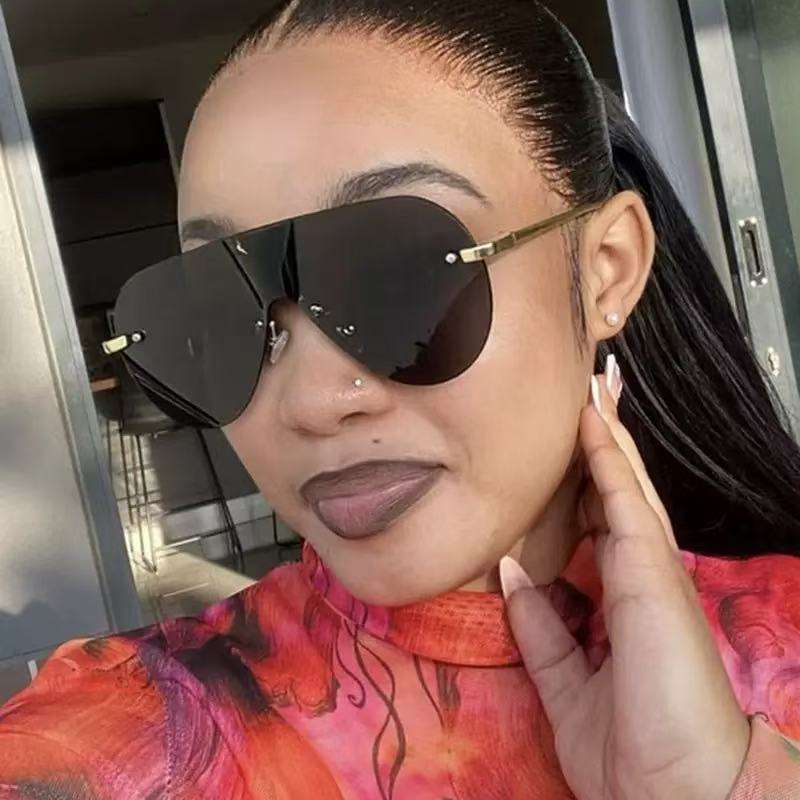 Occhiali da Sole Oversize Senza Montatura con Protezione per gli Occhi, Montatura in Metallo Dorato, Occhiali Futuristici Monoblocco per Donne
