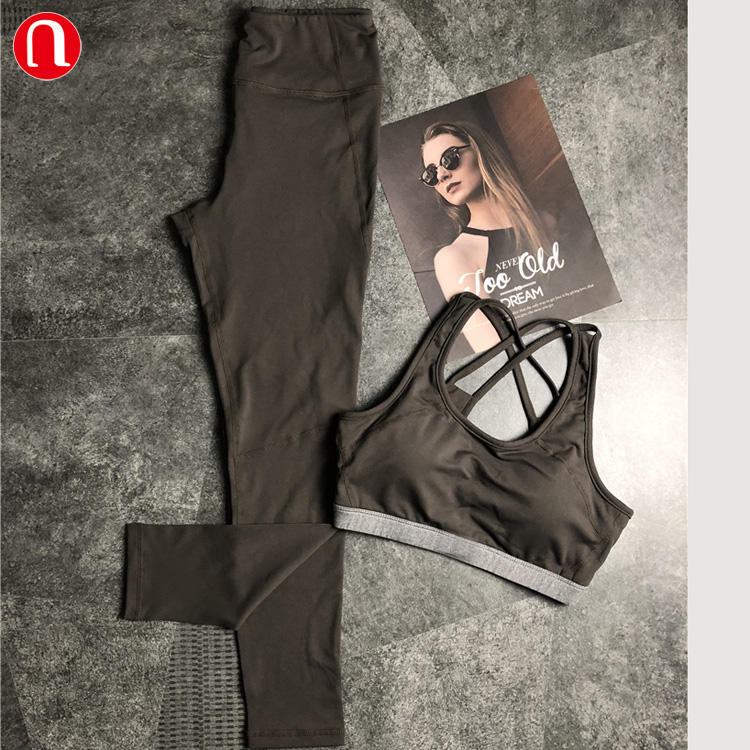 Eyun Sports Bra Custom Band Cutout Crop Leggings Yoga Pants for Women Workout Active Tights