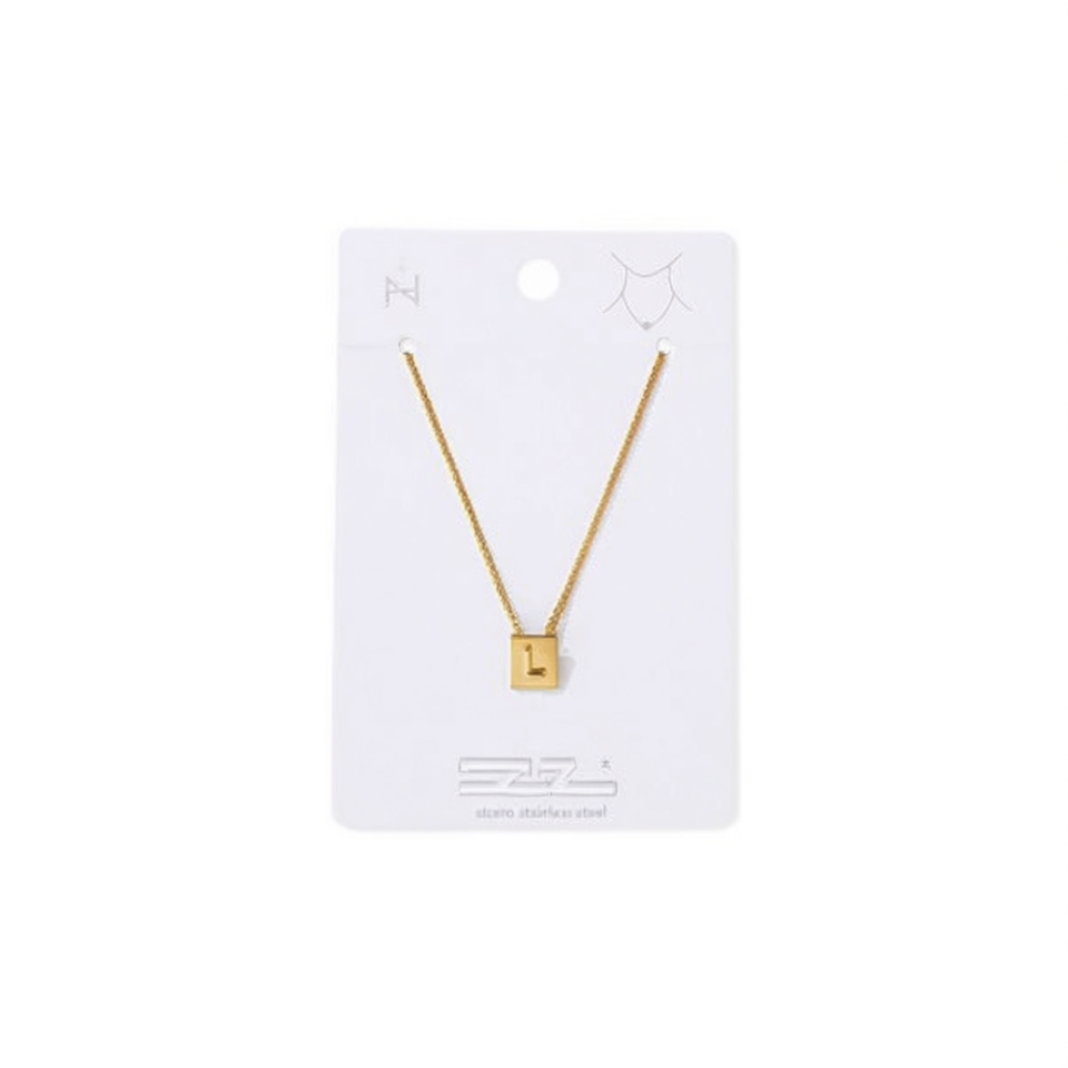 EzL Letter L Pendant Necklace Gold Plated Stainless Steel Minimalist Box Chain Unisex Everyday Jewelry Gift