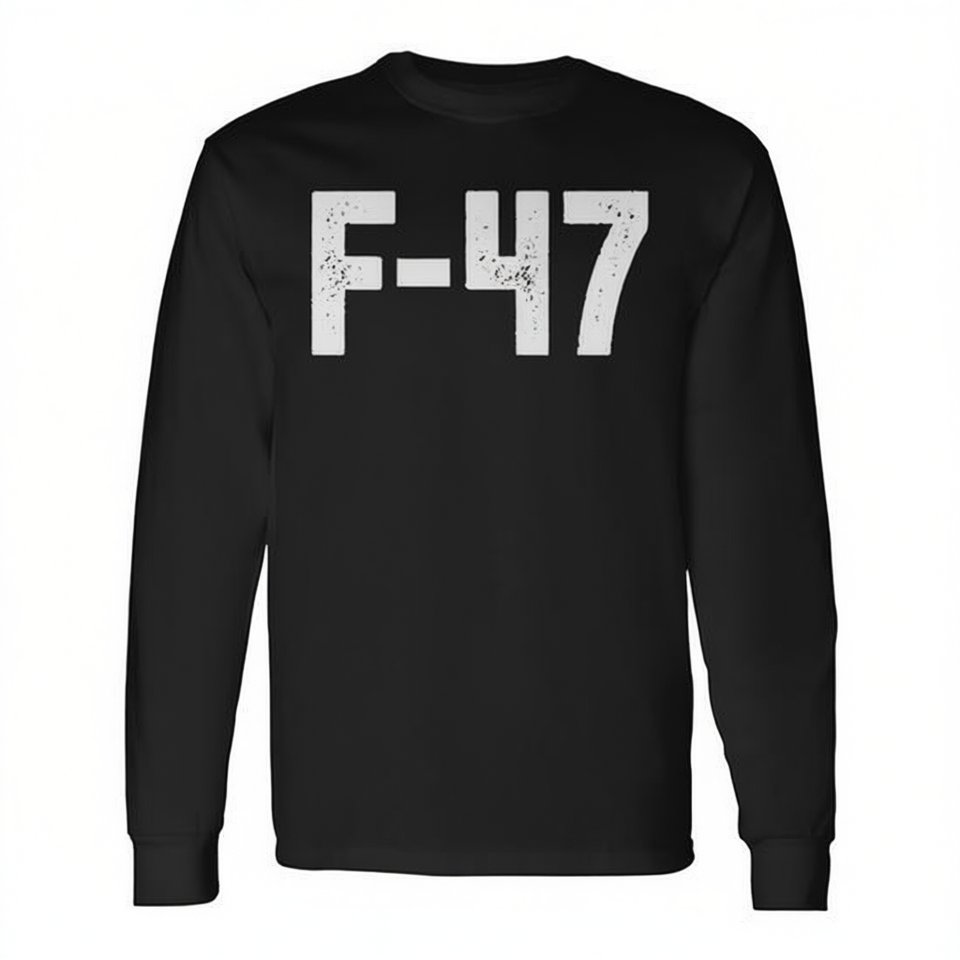 T-shirt a maniche lunghe F-47 nera con stampa grafica in stile militare, abbigliamento unisex