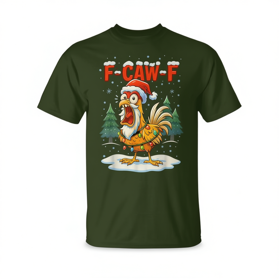 T-shirt natalizia F-Caw-F con cappello da Babbo Natale e design natalizio con luci