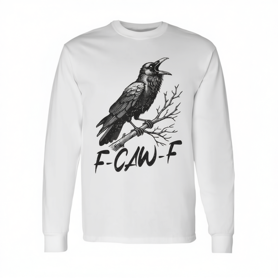 T-shirt a maniche lunghe F-Caw-F con grafica corvo nero, taglia unisex per adulti