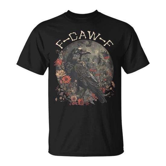 F Caw F Raven Bird Graphic T-Shirt Black Unisex Adult Crew Neck Short Sleeve Digital Printing