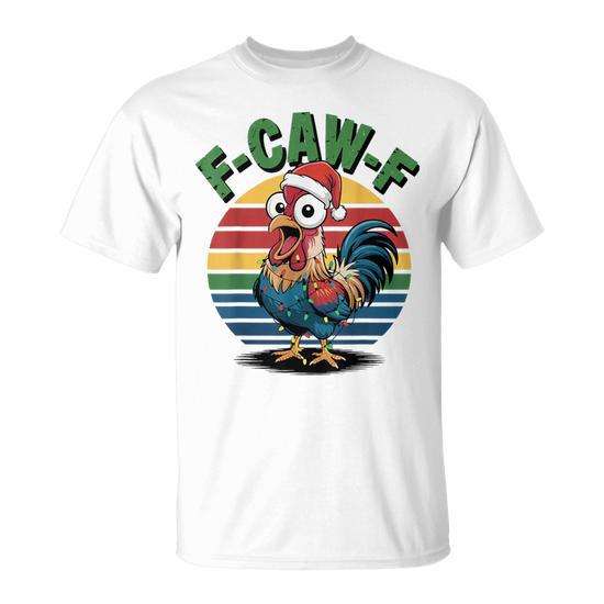 T-shirt natalizia retrò con gioco di parole F-Caw-F Rooster, unisex, taglia adulta M-XL, divertente maglietta per le vacanze