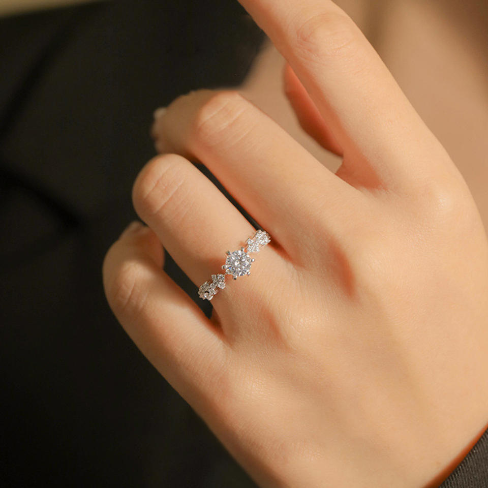 F1007 Women's White Gold Diamond Engagement Ring Round Brilliant Cut Natural G Color Main Stone Side Diamonds