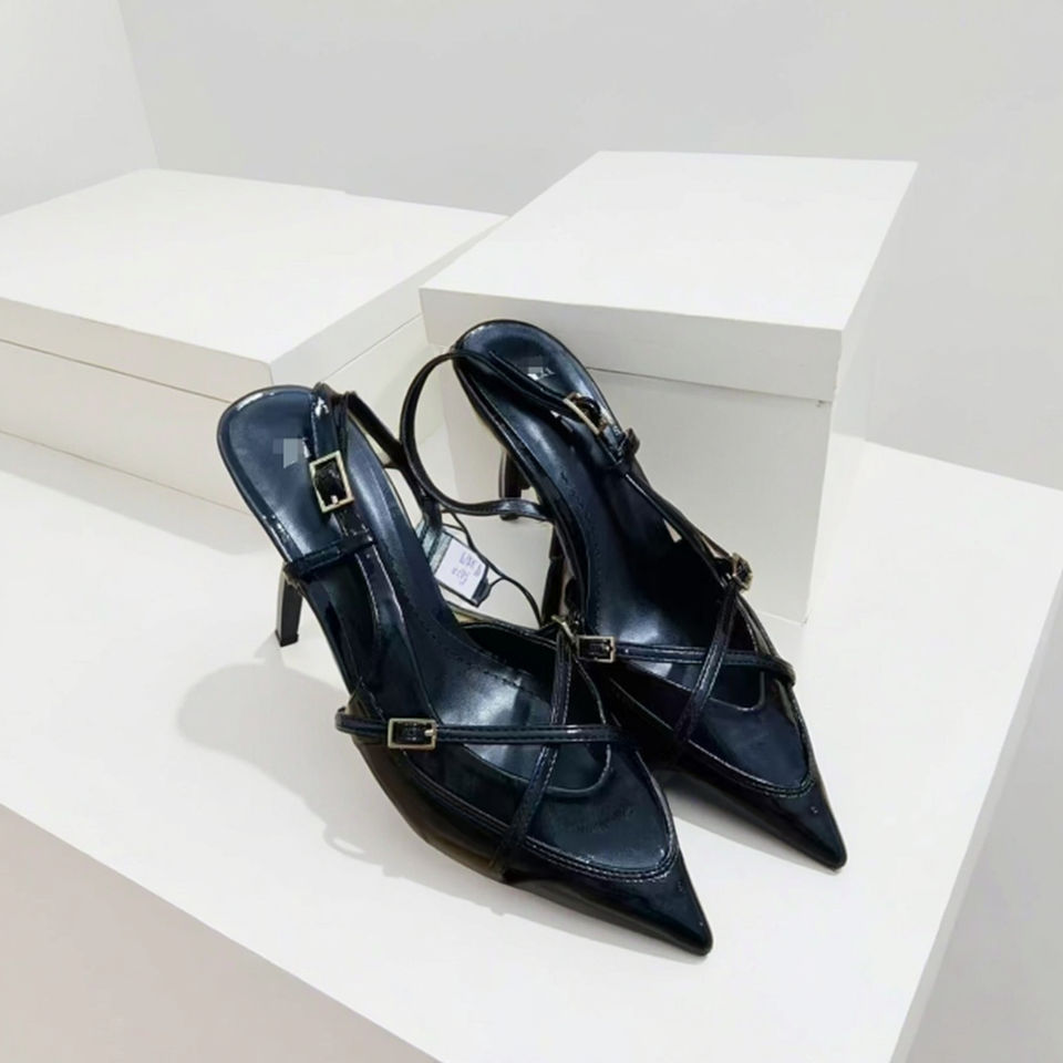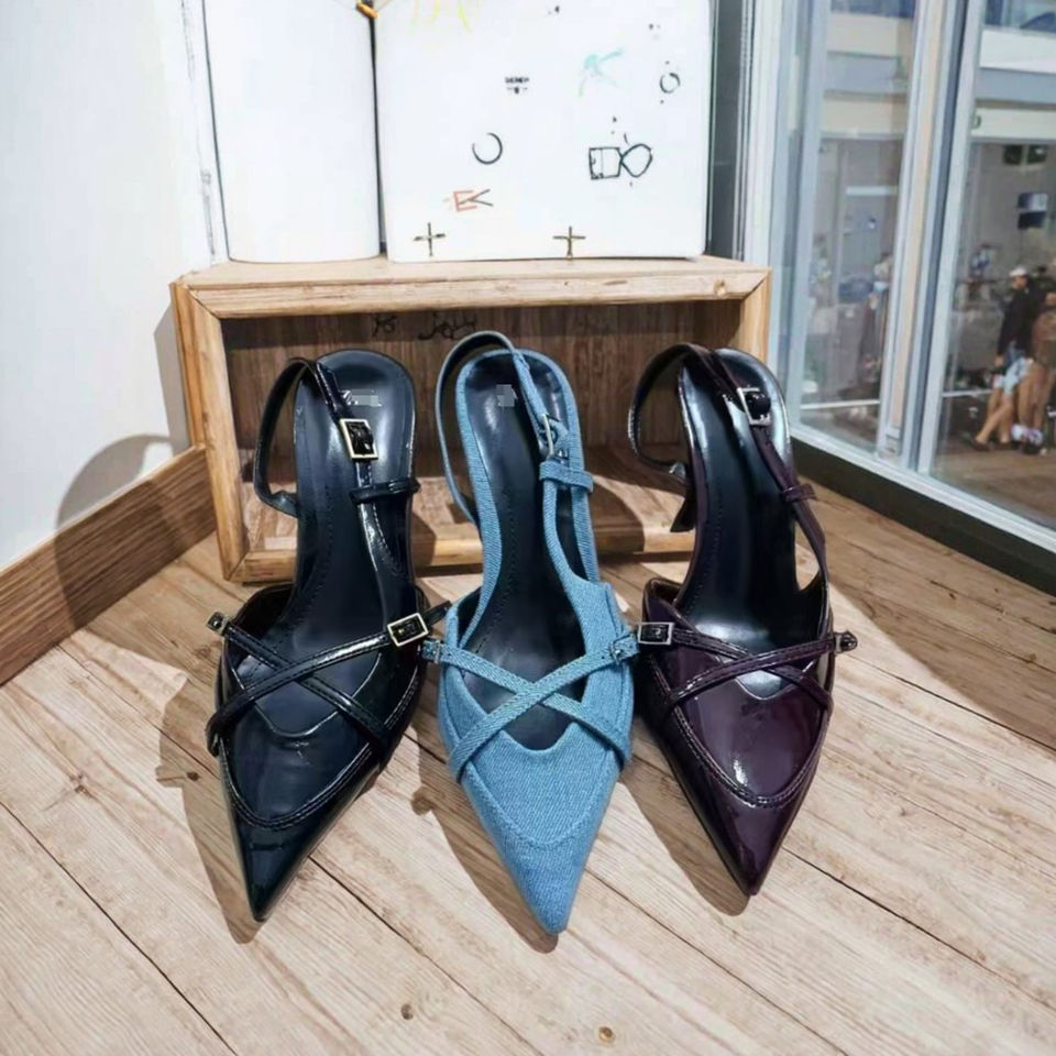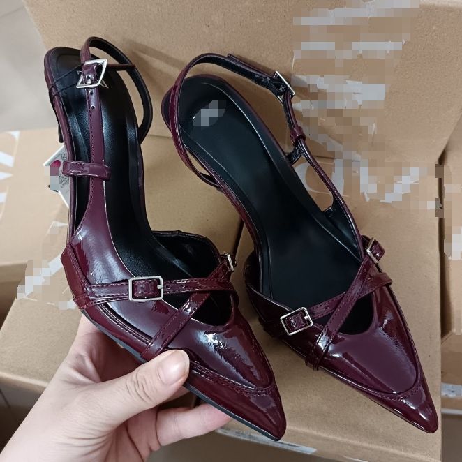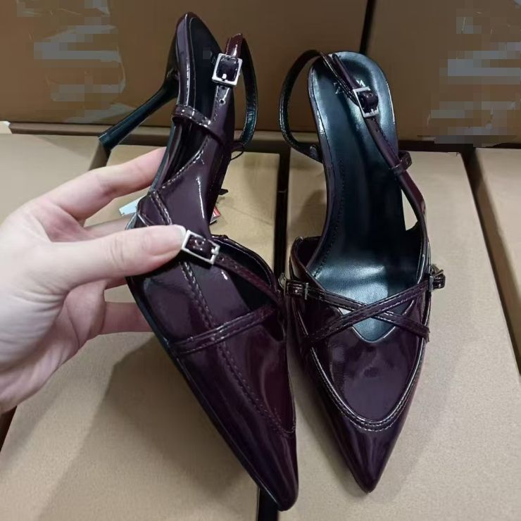 F1013 ZA Shoes Hot Sale Women Heeled Sandals Black Burgundy Pointy Bridal Party Shoes Pumps Office Dress Heels Summer Sandals