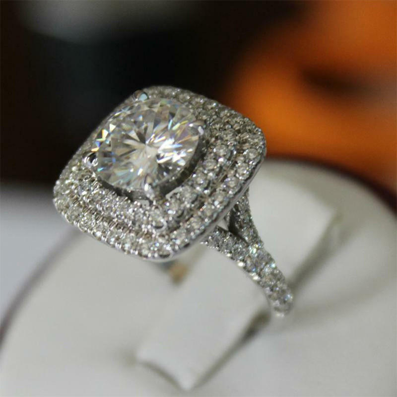 Anello F1030 in Oro Bianco con Diamante Taglio Cushion, Diamante Naturale per Fidanzamento, Gioielli da Donna, Colore G