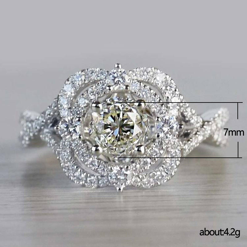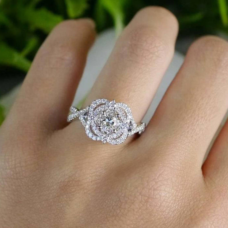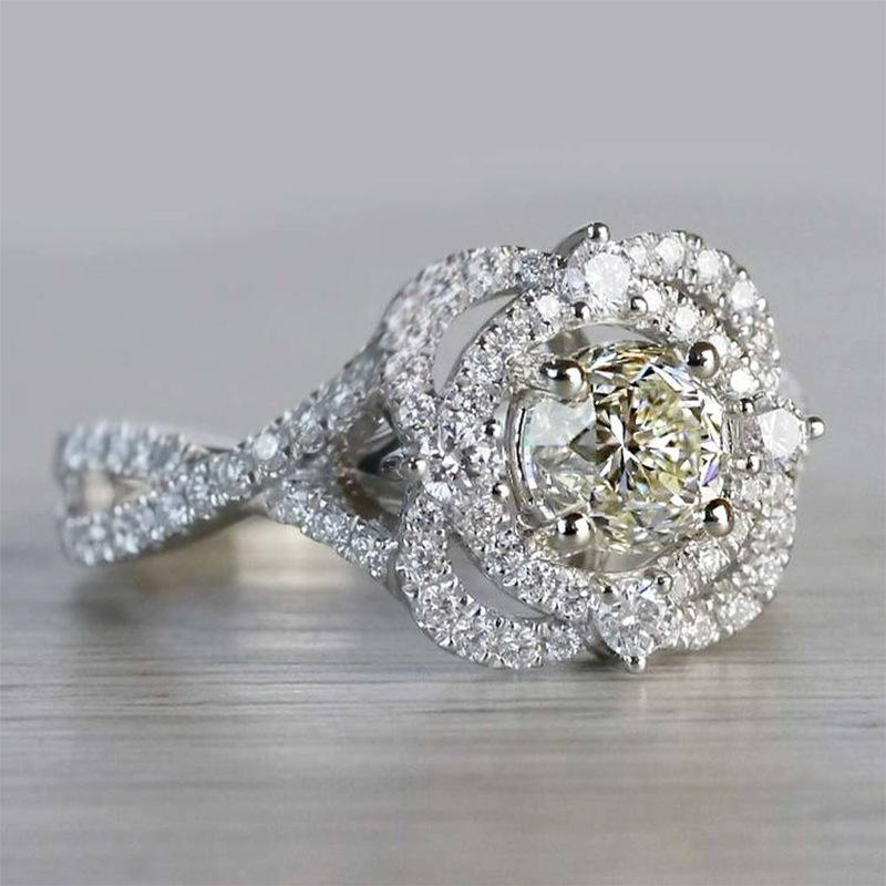 Anello di Diamanti F1031 in Oro Bianco, Taglio Brillante Naturale Rotondo, Colore G, Gioiello di Fidanzamento per Donne
