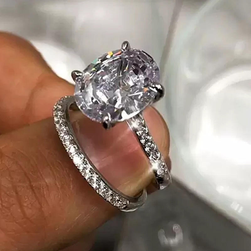 F1036 Women's White Gold Oval Cut Natural Diamond Engagement Ring With Side Diamonds D Color