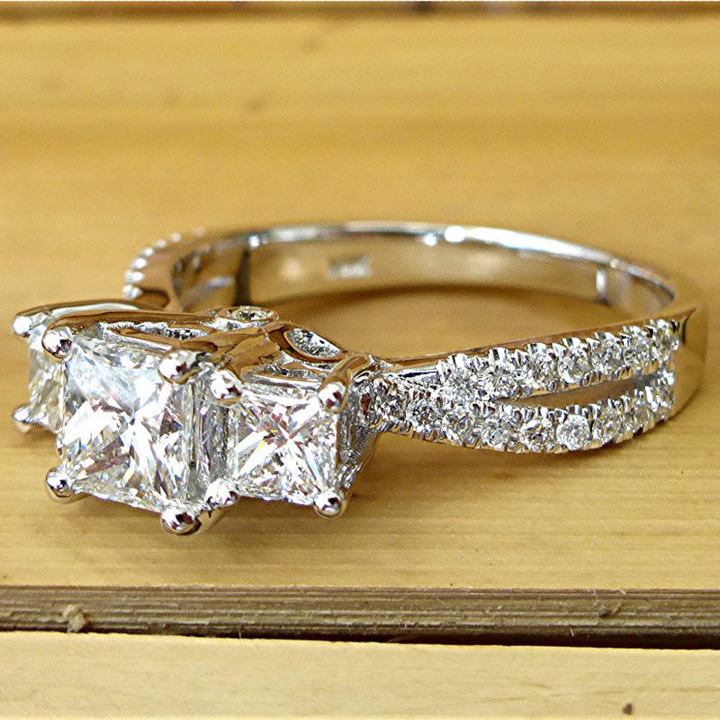 F1039 Women's White Gold Engagement Ring Princess Cut Natural Diamond G Color Side Diamonds