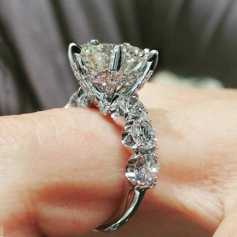 F1126 Women's White Gold Diamond Engagement Ring Round Brilliant Cut Natural Diamond D Color Side Stones