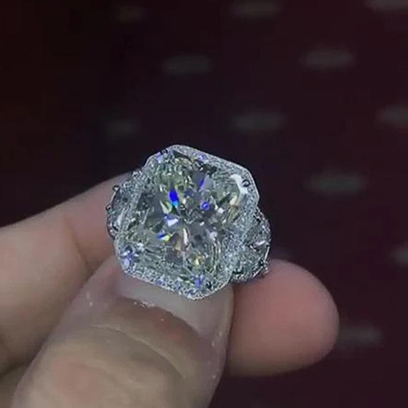F1182 Women's White Gold Diamond Ring Radiant Cut Natural Diamond Engagement Ring D Color Side Stones