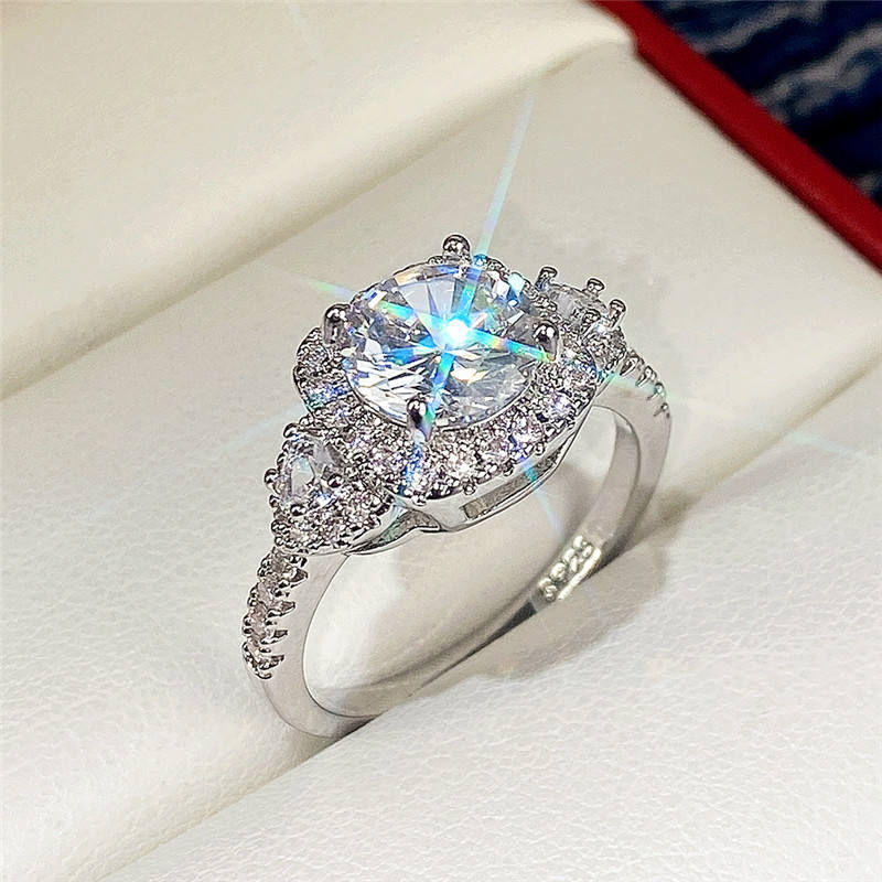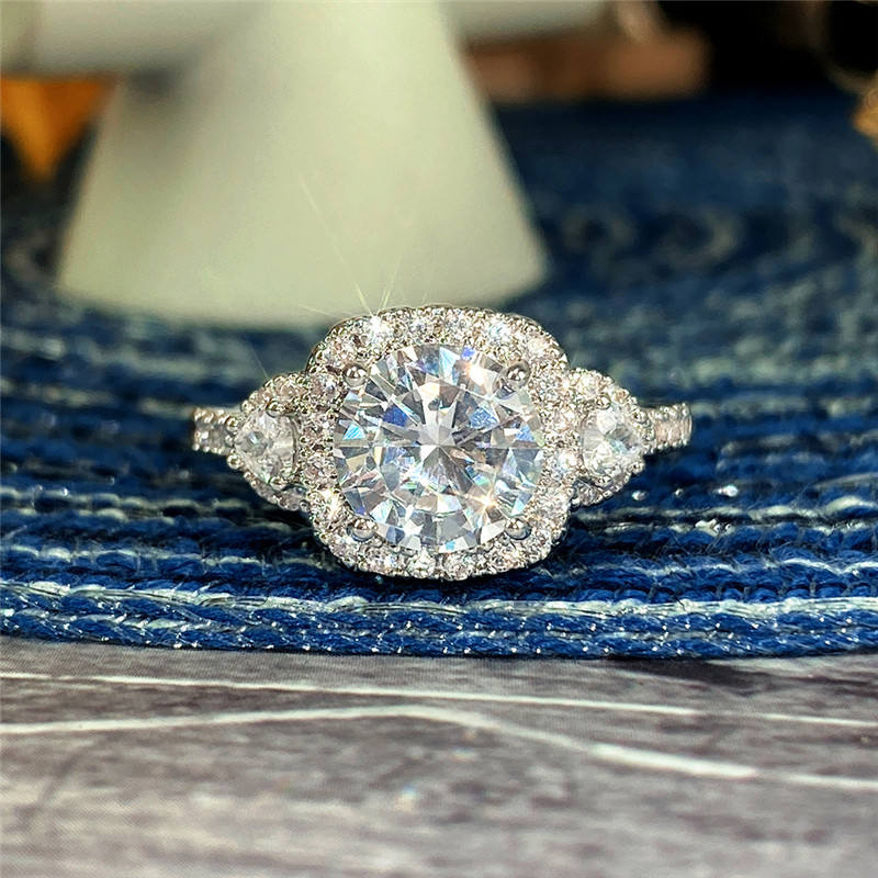 F1197 Women's White Gold Diamond Engagement Ring Round Brilliant Cut Natural G Color Halo Design