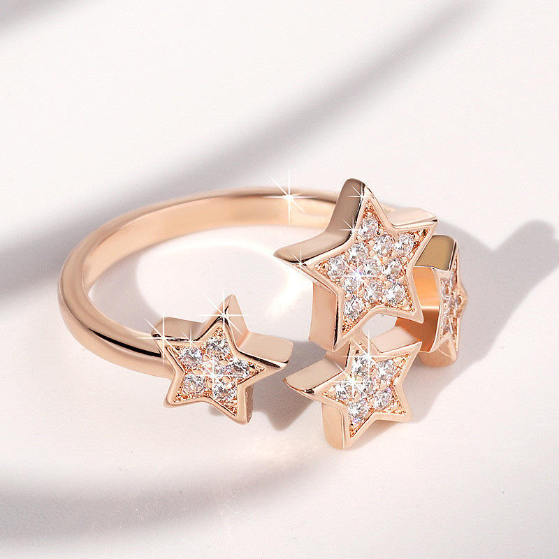 Anelli a grappolo di stelle F1268 per donna con zirconi cubici incastonati, anello regalo di bigiotteria alla moda.