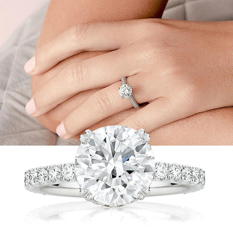 F1289 Women's White Gold Diamond Engagement Ring Round Brilliant Cut Natural D Color Side Diamonds