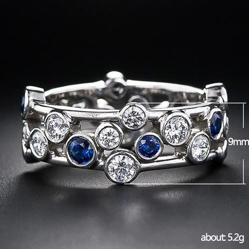 Anello F1325 con Zaffiro Naturale Rotondo, Montatura a Griffe, Anello di Fidanzamento Unisex alla Moda