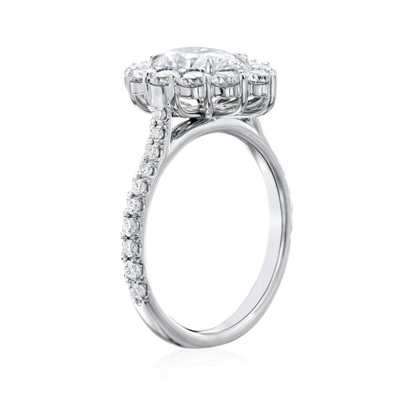 Anello F1339 in Oro Bianco con Diamante Naturale Taglio a Pera, Colore D, Montatura Halo per Fidanzamento Femminile