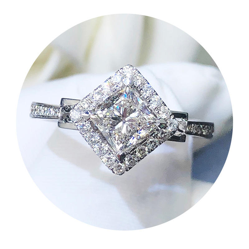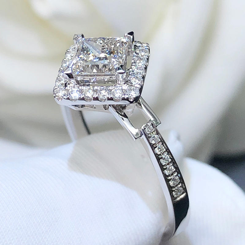 Anello con Diamante Taglio Princess F1369 in Oro Bianco Naturale Colore D Gioielli da Donna per Fidanzamento