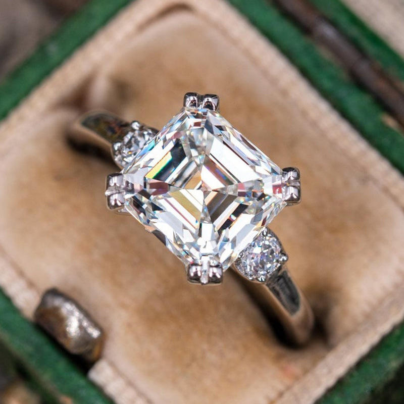 Anello con Diamante Taglio Asscher F1392, Pietra Naturale, Gioiello Classico da Donna per Fidanzamento