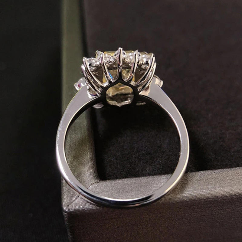 F1394 Luxury Women's Diamond Ring Emerald Cut Fancy Yellow Center Natural Side Stones Engagement Style