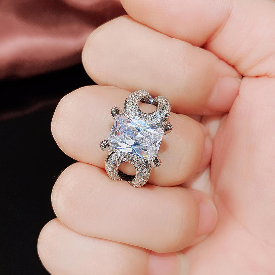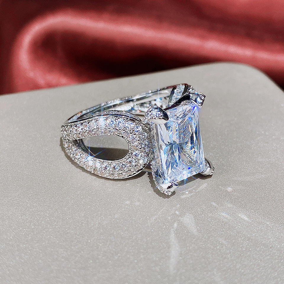 Anello di Diamanti F1437 con Taglio Smeraldo, Oro Bianco Naturale, Diamanti Laterali Colore D, per Fidanzamento Femminile