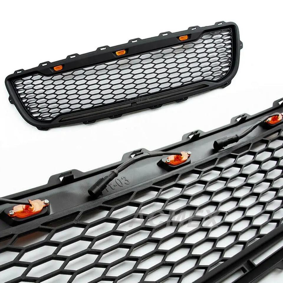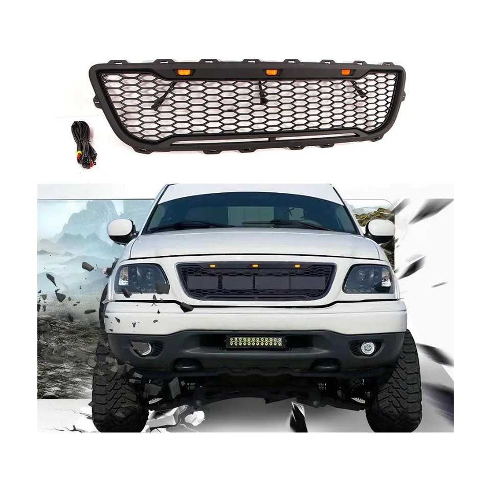 F150 1995-2003 Black ABS Front Bumper Grille Raptor Style With Letters and LED Lights Honeycomb Mesh Grille Grill for Ford