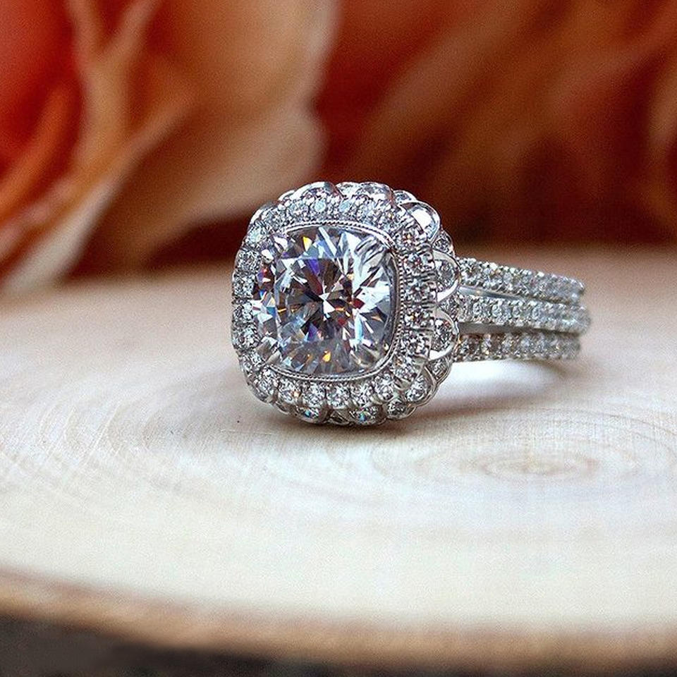 F1560 Women's White Gold Diamond Ring Cushion Cut Natural Diamond Engagement Ring With Side Diamonds D Color