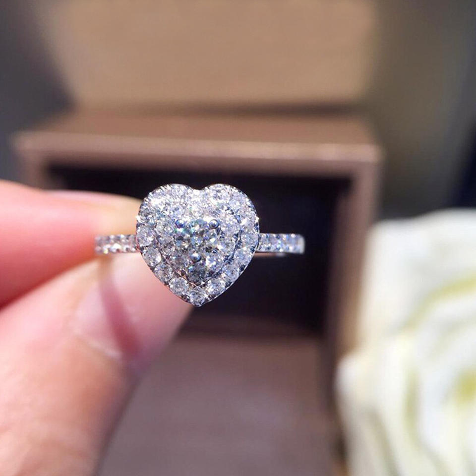 F1573 Heart Cut Diamond Ring Natural White Gold Women's Engagement Ring G Color Diamond Center With Side Stones
