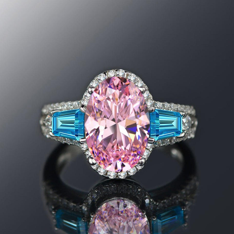 Anello F1607 in Moissanite con Taglio Ovale e Incastonatura a Pavé, Anello di Fidanzamento con Gemma per Donna
