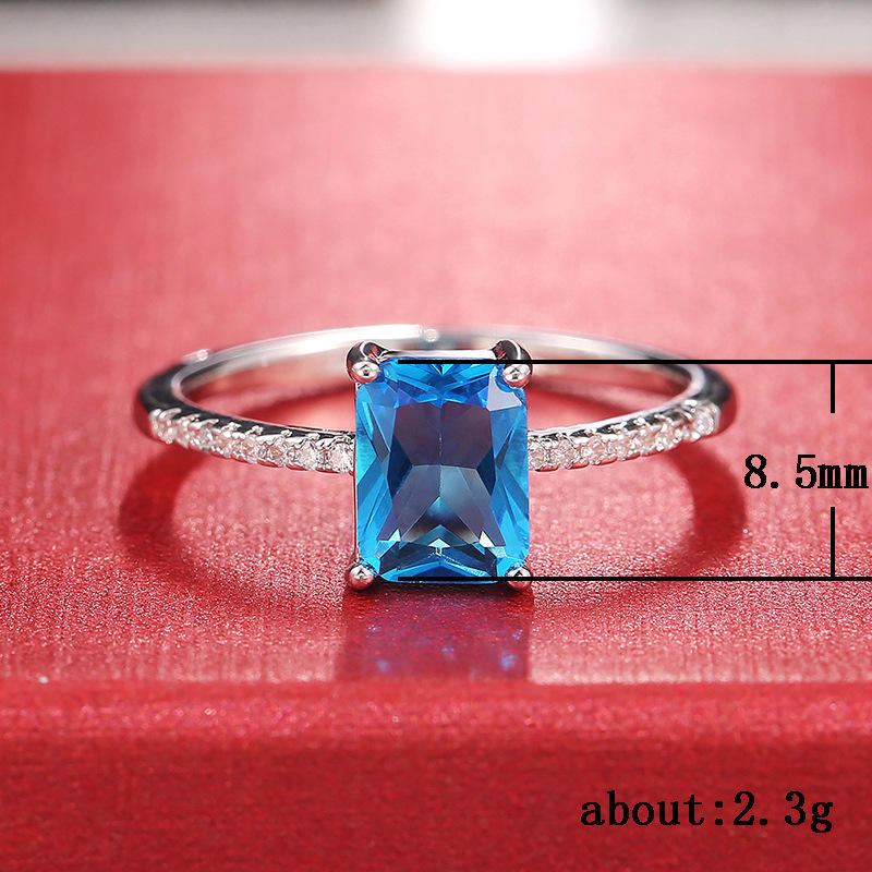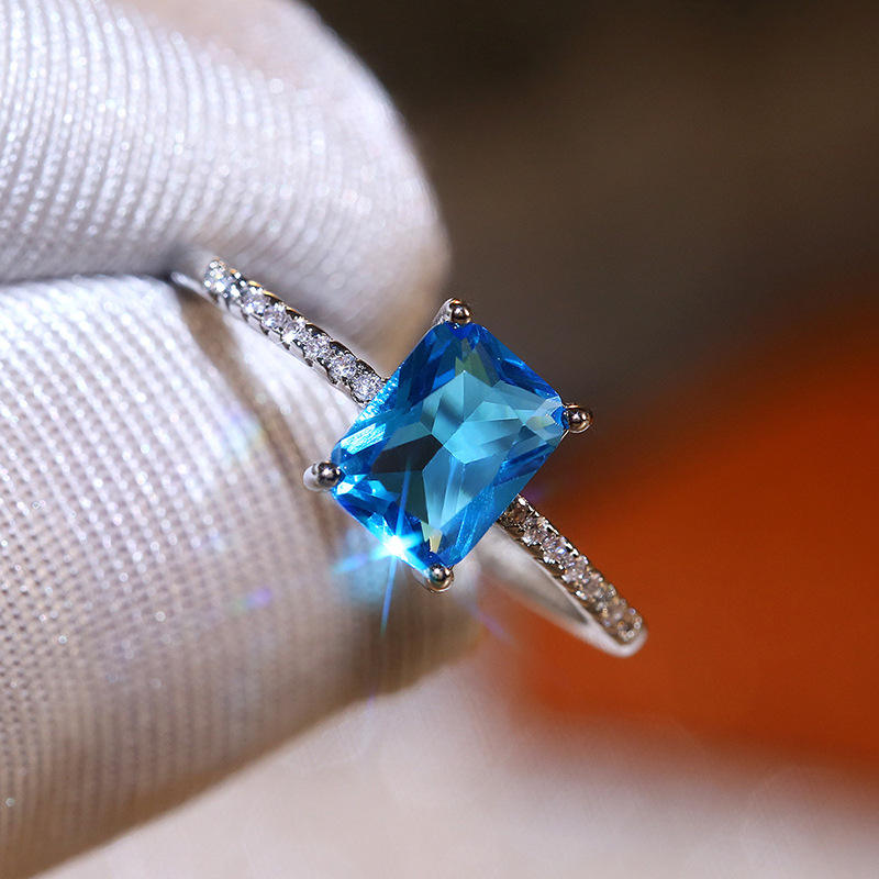 F163 Women's Silver Topaz Ring Geometric Engagement Jewelry With Diamond Accents