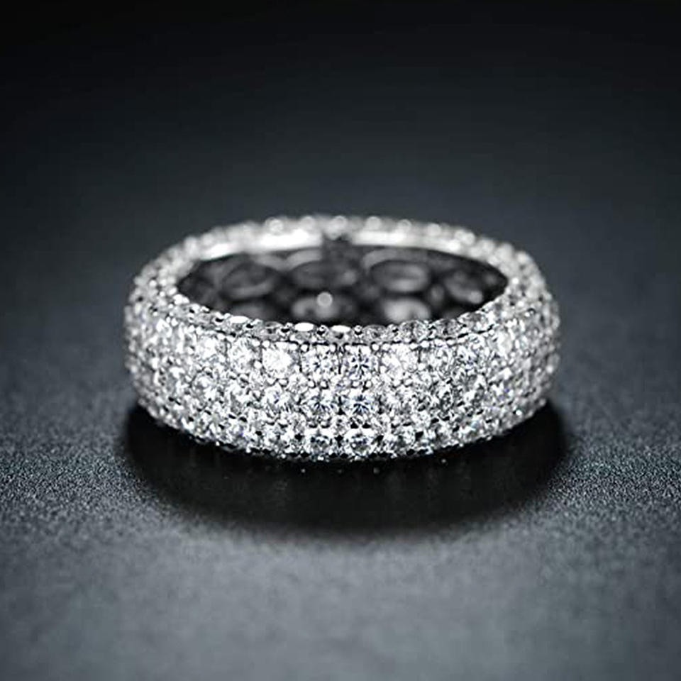 F1648 Luxury Women's 18K Solid Gold Diamond Ring Round Brilliant Cut Natural D Color Wedding Band