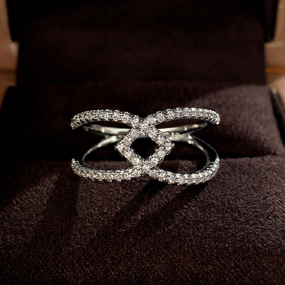 Anello di Diamanti F1650 in Oro Bianco, Taglio Brillante Rotondo, Colore G Naturale, Anello di Fidanzamento di Lusso per Donne