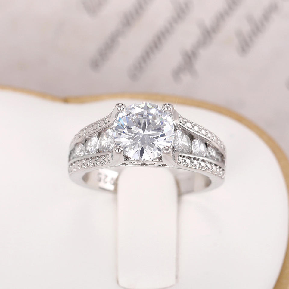 Anello di Fidanzamento F1663 per Donna in Oro Bianco con Diamante Taglio Brillante Rotondo Colore G Naturale e Diamanti Laterali
