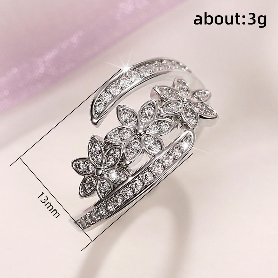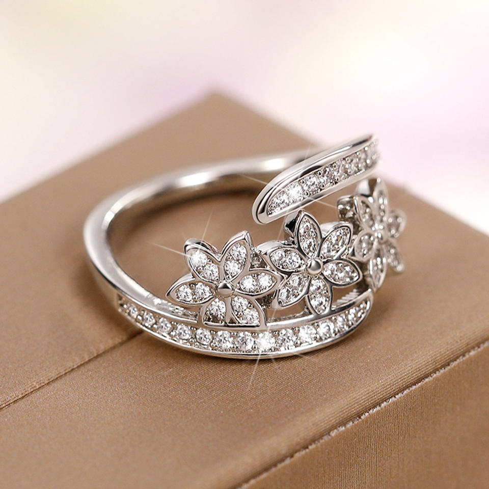 F1679 Silver Diamond Ring Women's Wedding Band Round Brilliant Cut Natural G Color Diamonds Floral Design