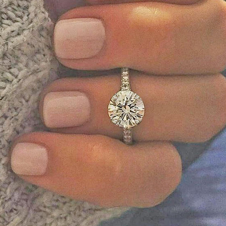 F1682 White Gold Diamond Engagement Ring with Side Stones Round Brilliant Cut Natural G Color Women's Jewelry